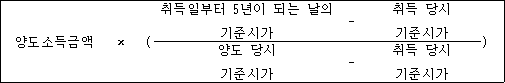 ① 법 제43조제1항에 따른 구조조정대상부동산을 취득한 날부터 5년간 발생한 양도소득금액은 「소득세법」 제95조제1항에 따른 양도소득금액 또는 「법인세법」 제55조의2제1항에 따른 양도소득(이하 이 항에서 "양도소득금액"이라 한다)으로서 다음 계산식에 따라 계산한 금액으로 한다. 이 경우 새로운 기준시가가 고시되기 전에 취득 또는 양도하거나 취득일부터 5년이 되는 날이 도래하는 경우에는 직전의 기준시가를 적용한다. ② 법 제43조제2항에 따라 양도소득세의 감면신청을 하려는 자는 해당 구조조정대상부동산의 양도일이 속하는 과세연도의 과세표준 신고와 함께 기획재정부령으로 정하는 세액감면신청서를 납세지 관할 세무서장에게 제출하여야 한다. ③ 제2항에 따라 감면신청을 받은 납세지 관할 세무서장은 제37조제25항에 따른 채무상환(예정)명세서 및 세액감면신청서를 통하여 해당 구조조정대상부동산을 확인하여야 한다. [전문개정 2015.2.3]