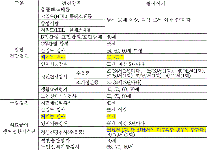 9. 골밀도 검사, 폐기능 검사, 노인신체기능검사