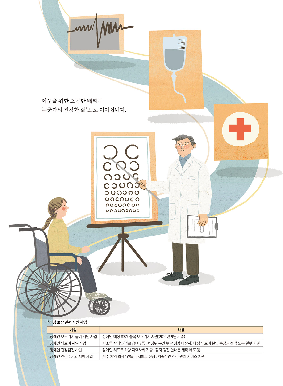 | 장애인 보조기기 급여 지원 사업 | 장애인 대상 83개 품목 보조기기 지원(2021년 9월 기준) |