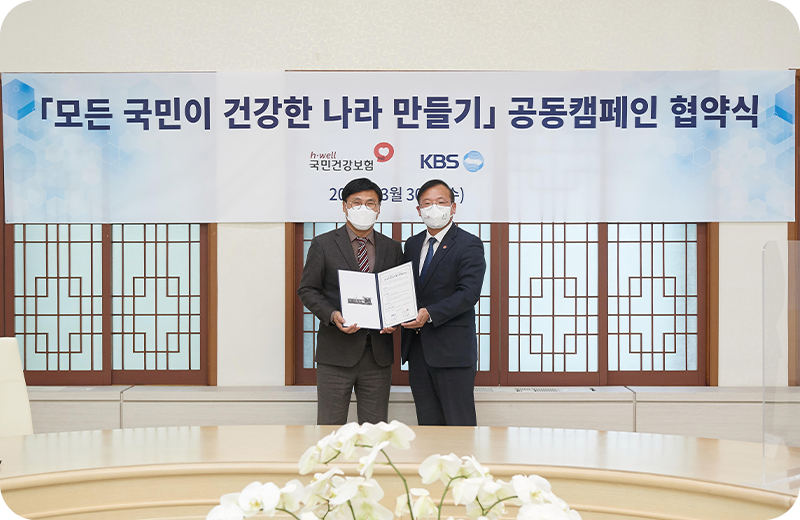 공단과 한국방송공사(KBS)는 ‘모든 국민이 건강한 나라 만들기’를 위한 공동 캠페인 추진을 위해 업무협약을 체결했다. 이를 통해 대한민국 국민이 건강하고 행복한 나라를 만들고 국민 삶의 가치와 행복지수 향상을 위해 함께 노력할 계획이다. 또한 전 국민 건강증진을 위한 건강보험제도 소개 프로그램 편성 및 관련 행사 추진 등 상호 긴밀히 협력하고 지원할 예정이다. 강도태 이사장은 “국민의 든든한 사회안전망인 건강보험이 대한민국을 더 건강하고 행복하게 만들 수 있도록 한국방송공사와 함께 노력하겠다”고 밝혔다.