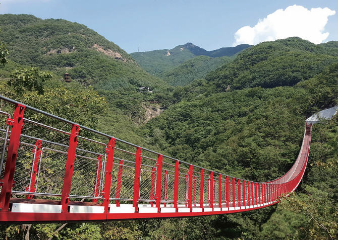감악산은 경기도권 오악(五岳) 중 하나이며, 감악산 둘레길의 시작점에 있는 출렁다리는 도로로 인해 잘려 나간 설마리 골짜기를 연결하는 다리다. 150m 길이로 펼쳐진 다리가 자연과 훌륭한 조화를 이루고 있다. 설마천을 끼고 있는 아기자기한 계곡, 운계폭포도 볼거리다. 거의 수직으로 떨어지는 폭포는 겨울 빙벽훈련에도 이용된다. 감악산 정상에는 감악산비(古碑, 높이 170cm, 향토유적 제8호)가 서 있고, 장군봉 바로 아래에는 임꺽정이 관군의 추격을 피해 숨었다는 임꺽정굴도 있다. 감악산은 휴전선과 가까워 정상에 오르면 임진강과 개성의 송악산이 두루 눈에 들어온다. 능선에나 있는 솔향기 그윽한 등산로와 상큼한 흙내음이 일품이라 많은 등산객들이 찾는다.