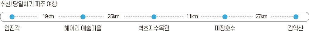 수도권이지만 수도권 같지 않은 시골 풍경과 훼손되지 않은 자연, 문화와 예술까지 모두 만날 수 있는 곳. 바로 파주다. 산과 호수, 드넓은 광장과 아름답게 가꿔진 수목원과 예술마을로 다채로운 모습이다.