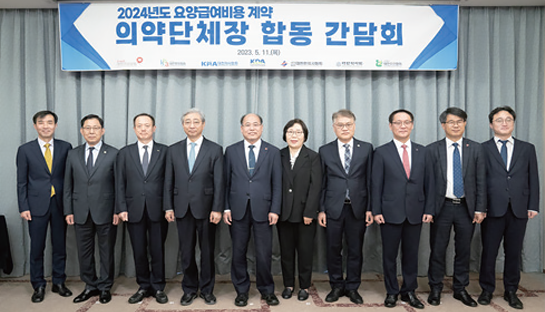 공단은 5월 11일 서울 가든호텔에서 2024년도 요양급여비용 계약의 성공적인 체결을 위해 의약단체장들과 만남의 자리를 마련하고 오찬을 함께 했다. 올해는 그간 제기된 제도개선 요구에 대해 수가조정률 설정의 객관적 준거가 될 수 있는 모형과 협상구조 개선방안을 마련하여 가입자, 공급자, 전문가 의견수렴을 거쳐 활용할 예정이며, 이를 바탕으로 한 중점 추진 사항도 밝혔다. 공단은 5월 셋째 주부터 의약단체와 본격적인 협상을 거쳐 국민건강보험법에 의해 계약을 체결했다.