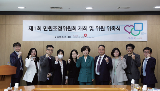 공단은 전 국민 대상의 최다 민원처리 공공기관으로서 적극적인 민원 해결을 위해 5월 2일 제1회 민원조정위원회를 개최했다. 위원회는 공단 민원처리규정 제17조에 근거하여 고객지원실장(조준희)을 위원장으로 민원관련 부장, 감사업무 수행 부장 등 내부위원 4명과 법률전문가, 민원행정 전문가 등을 위촉하여 총 9명으로 구성·운영되었다. 위원회는 △장기 미해결 민원, 반복·다수인 관련 민원에 대한 해소·방지 대책 △거부처분에 대한 이의신청 △소관이 불명확한 민원의 처리부서 지정 △민원 관련 제도 개선사항을 심의·조정하여 최종 결정한다.